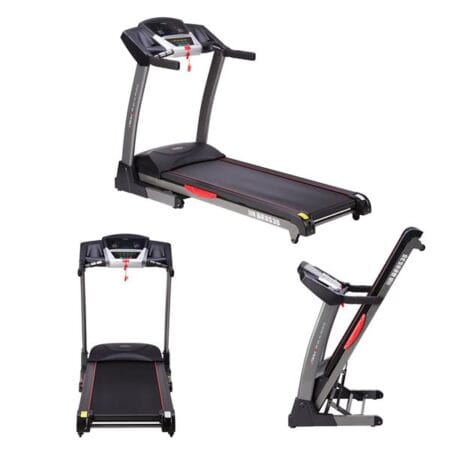 Zaletą są również kółka transportowe pozwalające na łatwe przemieszczanie urządzenia oraz możliwość złożenia, co pozwala na przechowywanie bieżni w domowych warunkach.