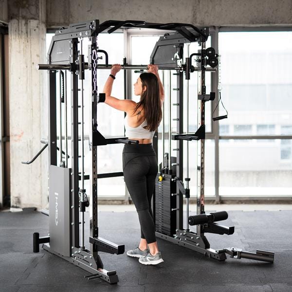 - Niezależne ruchome ramiona (jammer arms) – dające użytkownikowi możliwość wyciskania na klatkę piersiową w pozycji siedzącej z dowolnym obciążeniem