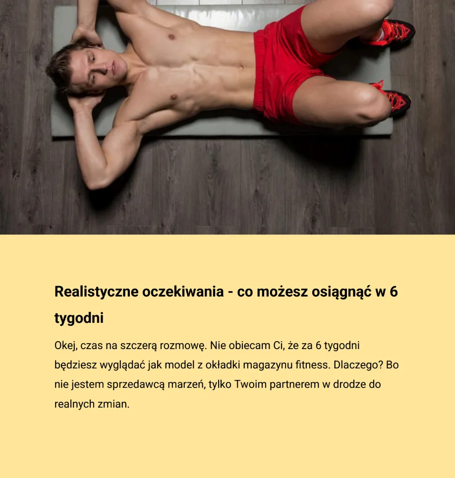 - Kompletny 6-tygodniowy plan treningowy — progres krok po kroku, bez zgadywania co robić