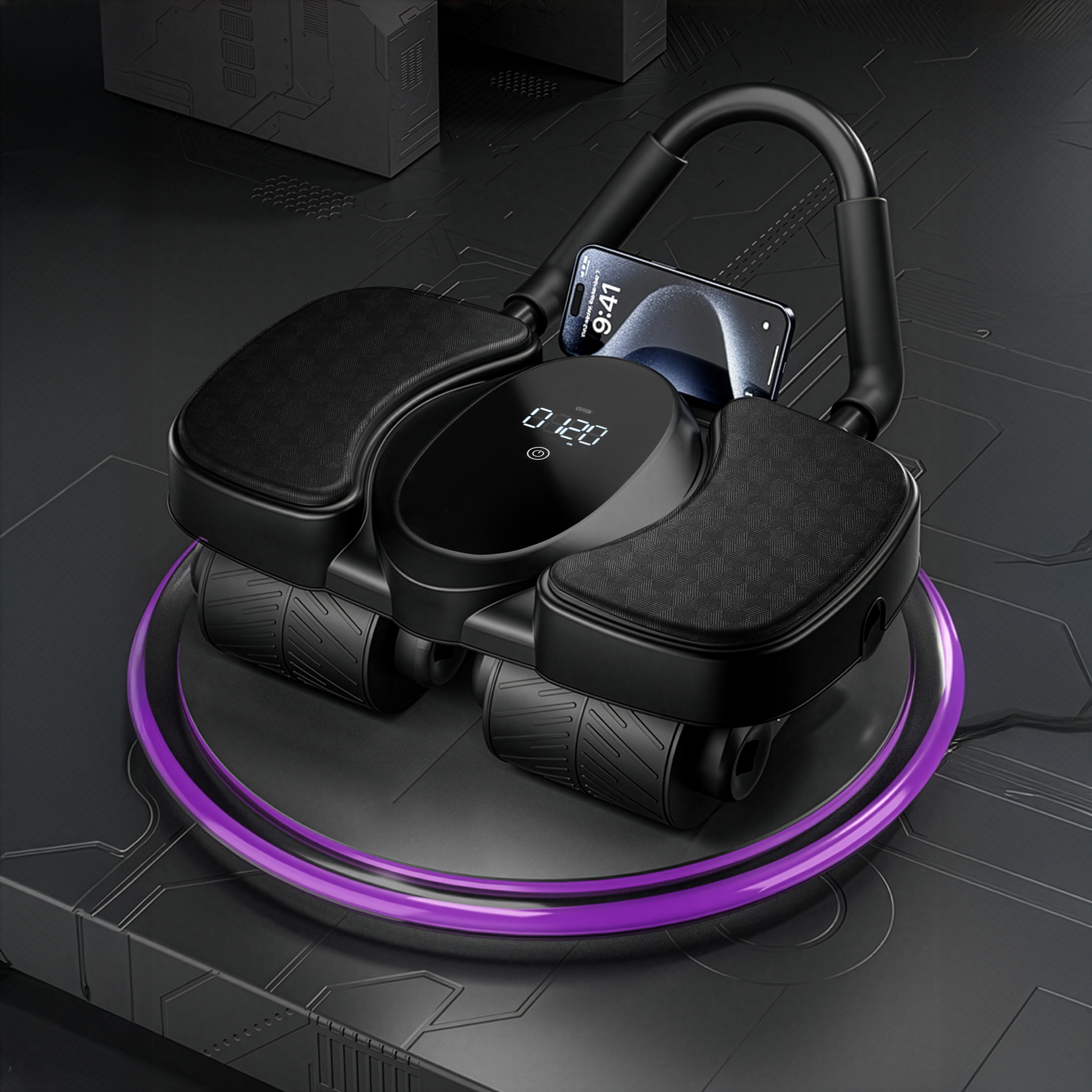 - Roller do brzucha z podparciem, licznikiem LCD i uchwytem na telefon