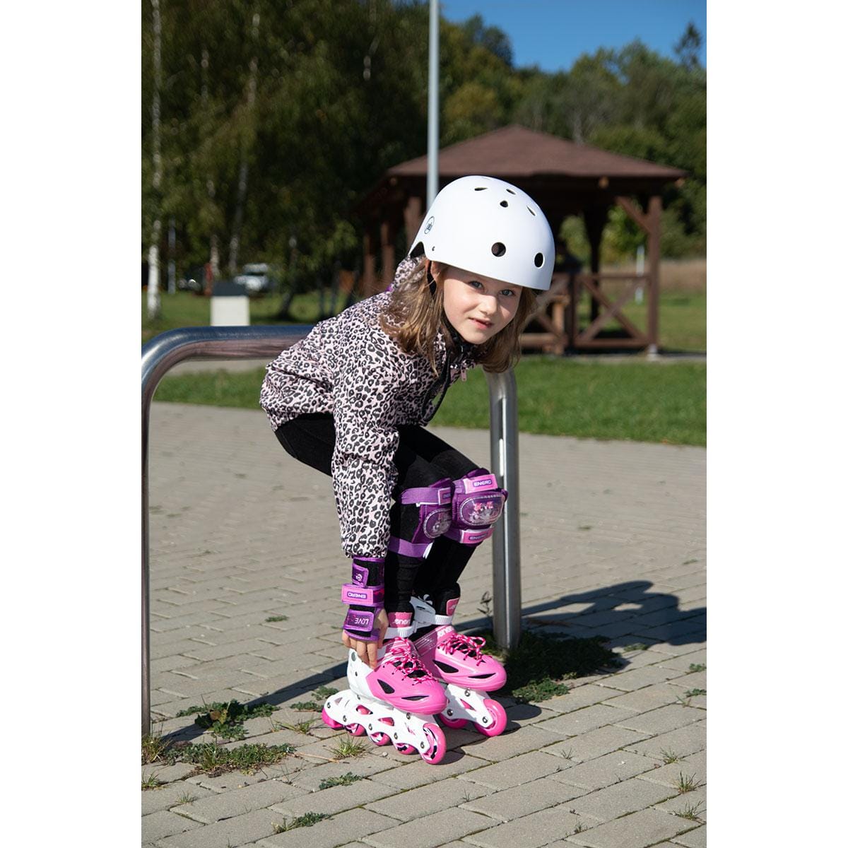 ŁYŻWOROLKI – 3 SKATE – ŁYŻWY- WROTKI 4W1 ENERO gwarantują czystą przyjemność z jazdy. Wyposażone są w lekką i mocną płozę z materiału PP, hamulec przy jednej rolce, kółka PVC o średnicy 64 mm i szerokości 22 mm, regulowane 3 zapięcia oraz regulację rozmiaru. Kółka z tworzywa PVC oraz łożyska ABEC 5 pozwalają na mniejsze opory toczenia, dobrze adoptują się do podłoża, idealnie pasują do nauki lub spokojnej rekreacyjnej jazdy. Wzmocniony wierzch obuwia , szeroki wygodny krój oraz miękka wyściółka wokół kostki zwiększają znacznie komfort użytkowania podczas jazdy. Ostrze łyżwy wykonane ze stali nierdzewnej jest odporne na uszkodzenia oraz rdzę.