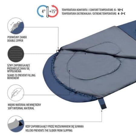 Śpiwór NC2107 M marki NILS CAMP to świetne rozwiązanie dla każdego, kto uwielbia wypoczynek oraz spędzanie wolnego czasu podczas campingu lub pod namiotem.