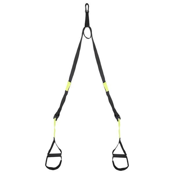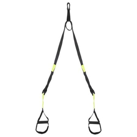 Zestaw zawiera, taśmy treningowe zakończone uchwytami oraz metalowym karabińczykiem oraz uchwyt na drzwi. Uchwyty pokryte są materiałem, który zapobiega ślizganiu się dłoni, podczas ćwiczeń.